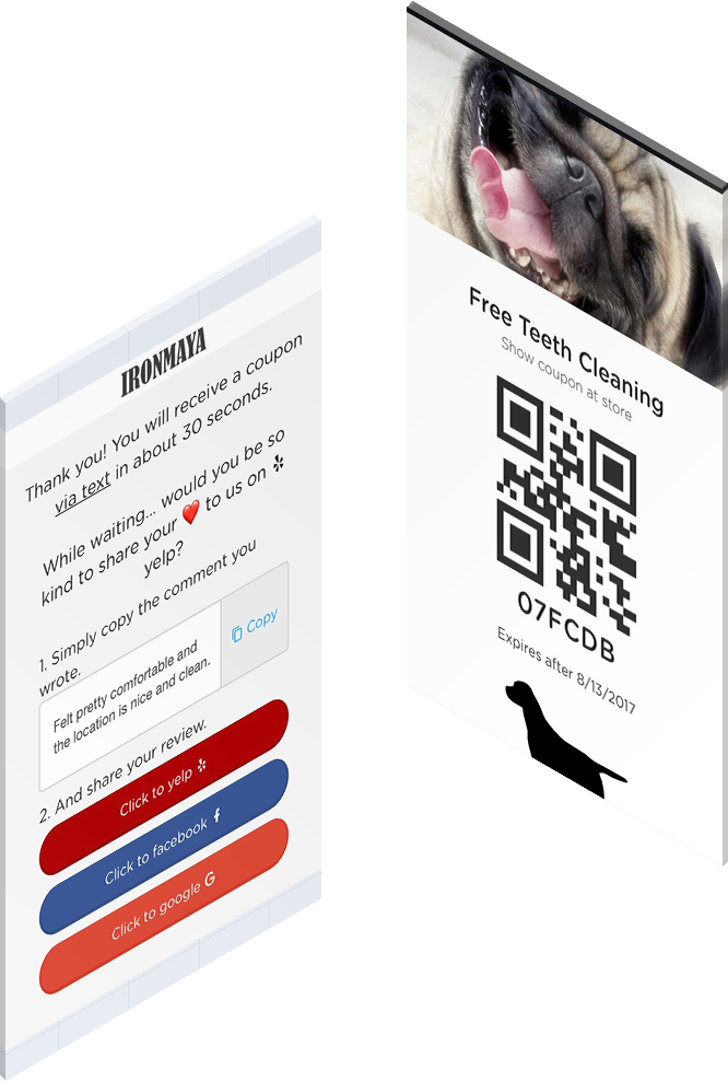 I've been using Smiley since the day I opened my store. I absolutely love it! It helps me not only collect 5-star reviews, but also prevent bad reviews posting to Yelp. Smiley alerts me bad reviews before they going to Yelp, and I can send personal coupons to customers right from the inbox in Smiley.