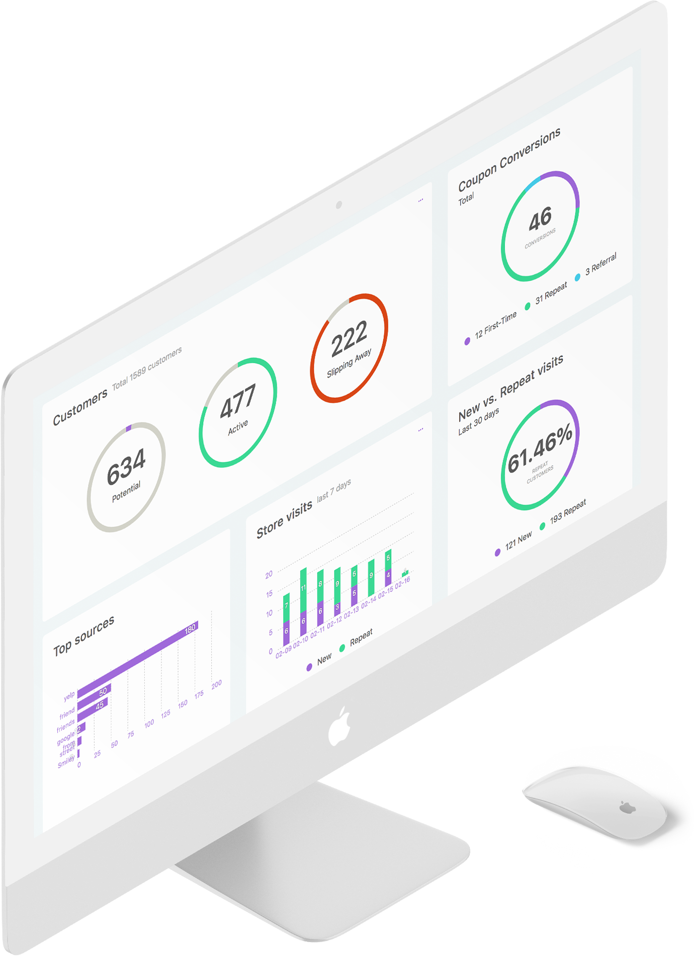 Smiley offers feedback, next-visit coupon, referral features that help run your marketing automatically.